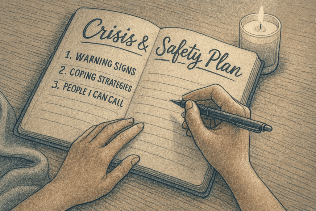A solid and well thought out safety plan can significantly reduce the risk of an individual completing suicide through having access to support and knowing how to manage a crisis. Having a well constructed safety plan can also give the individual a sense of control during overwhelming moments so that they do not act impulsively. It is recommended that a safety plan is completed with a licensed mental health provider to ensure it is tailored to the individuals specific needs and circumstances.